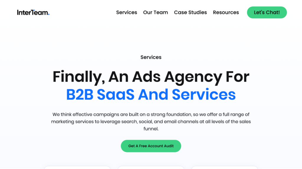 InterTeam Marketing is a paid advertising agency built exclusively for B2B SaaS companies. Across Google, LinkedIn, Reddit, Meta, and Bing, their work connects ad spend to qualified pipeline.